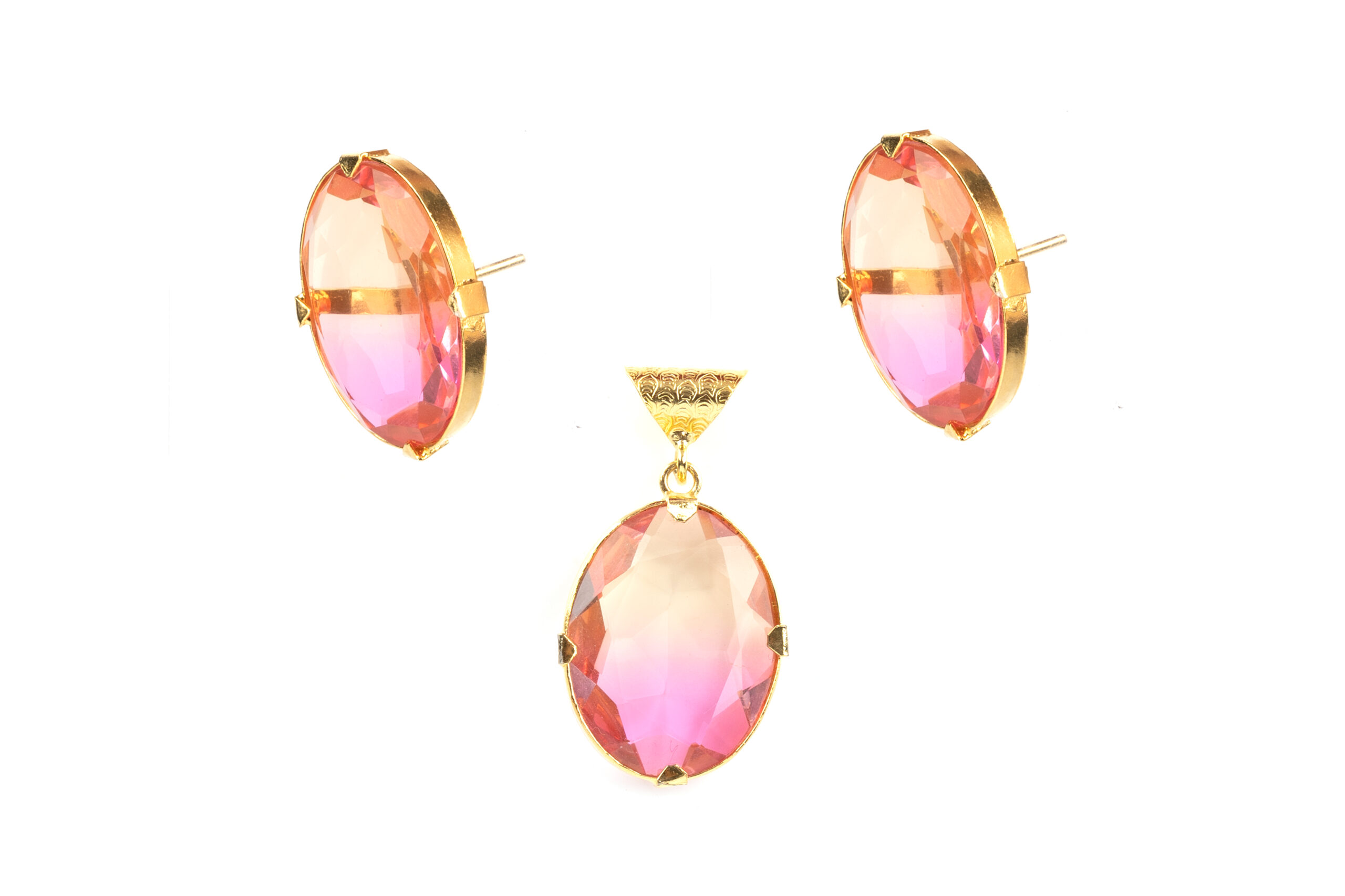 Experience the enchanting allure of our Blush Harmony Pink  Set. Inspired by the delicate beauty of pink gemstones, this set captures the essence of grace and femininity. Let the shimmering double-colored stones reflect your inner radiance, making every moment special with their timeless elegance.