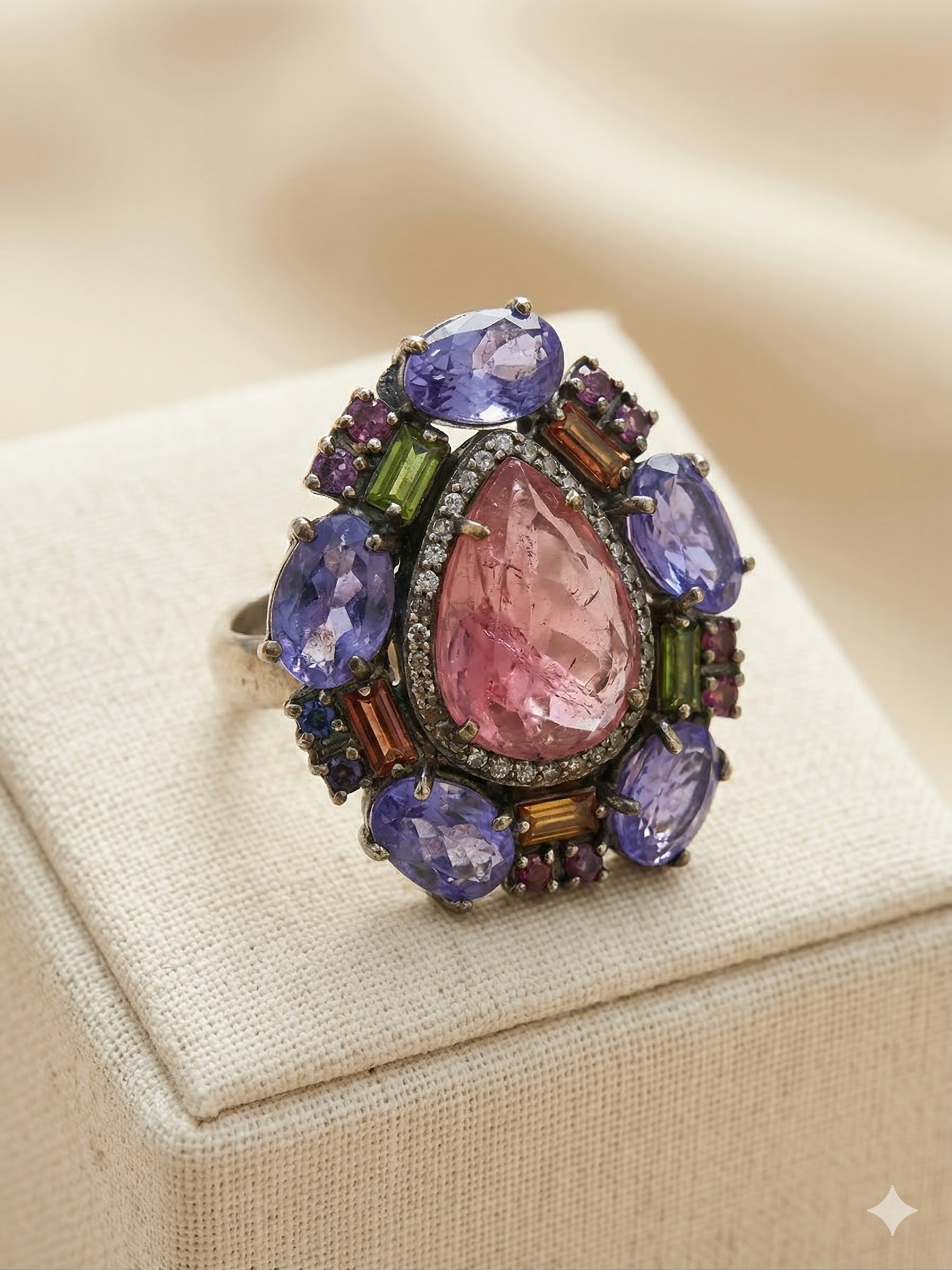 SEO keywords: 925 silver diamond ring, tourmaline ring, gemstone silver ring, designer ring for women, luxury silver jewellery